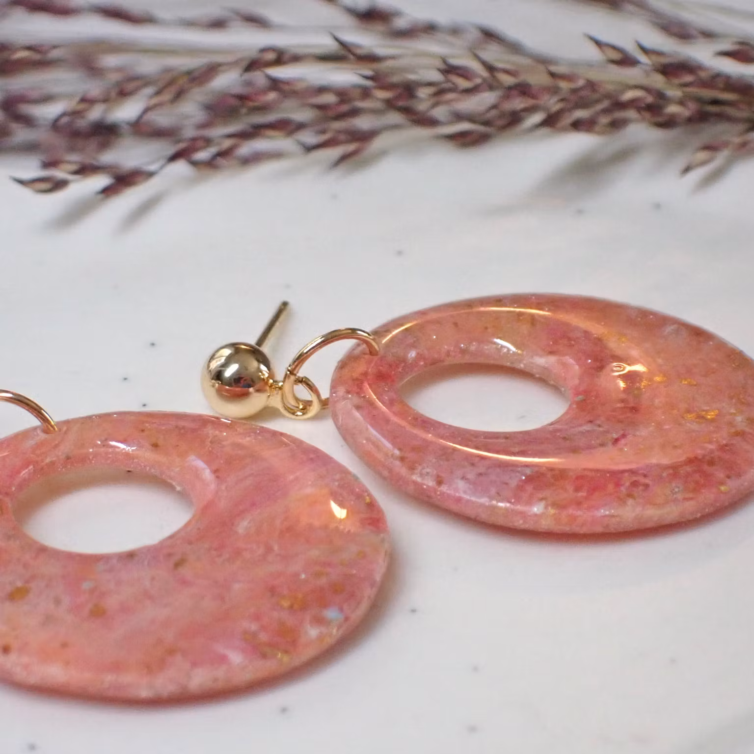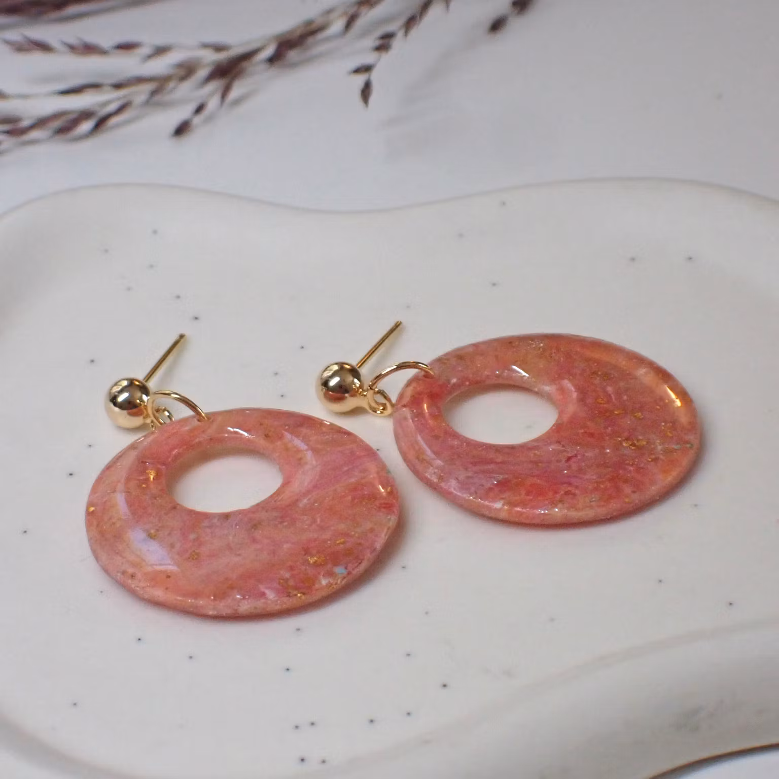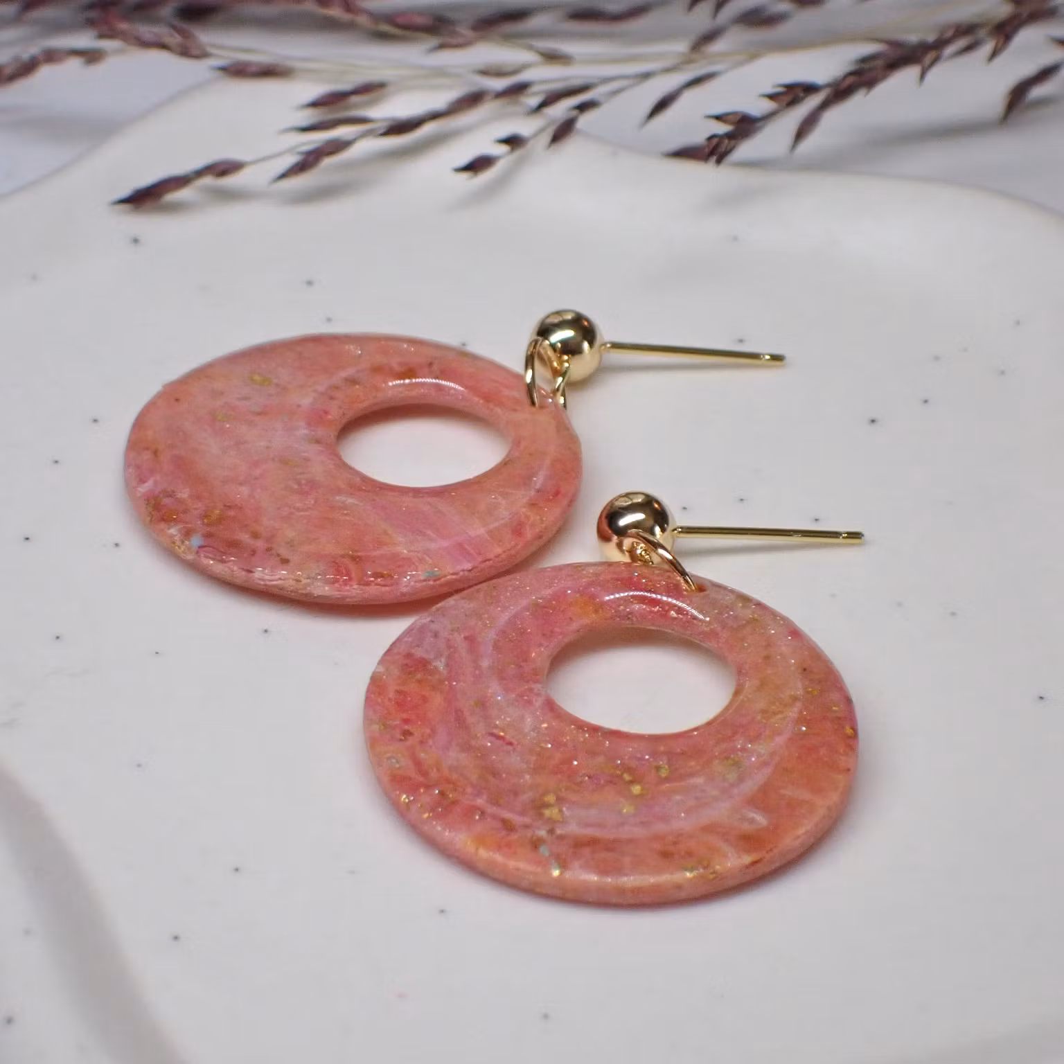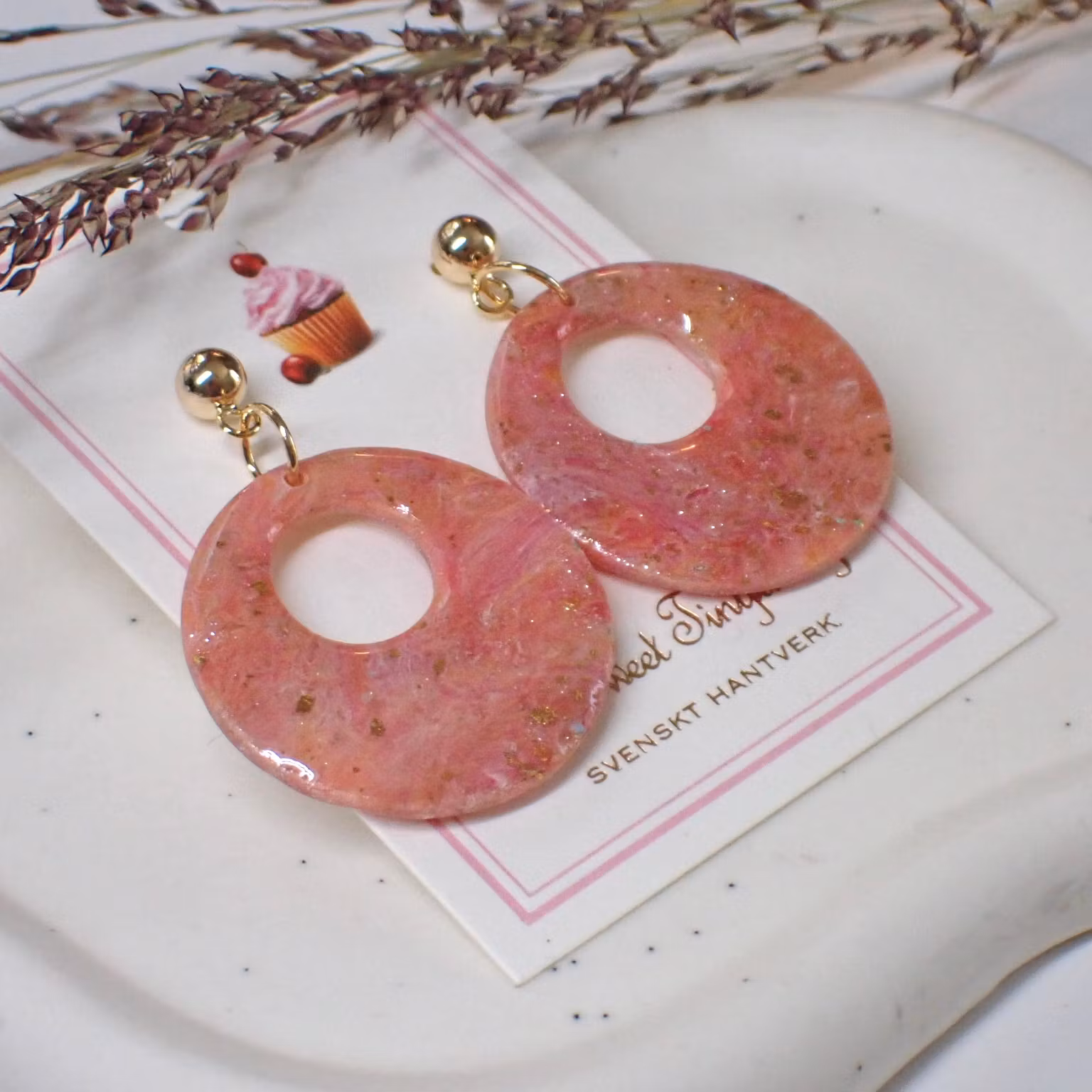 Eleganta och unika örhängen i polymerlera. Nickelsäkra och guldpläterade krokar av hög kvalitet.