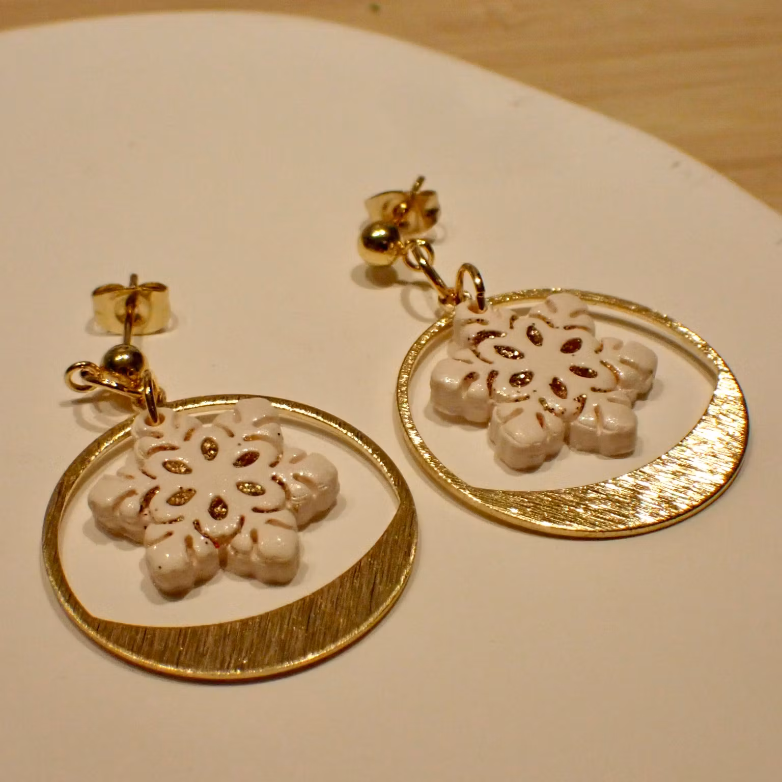 Handgjorda örhängen med detaljer i guld. Söta hela vintern!
