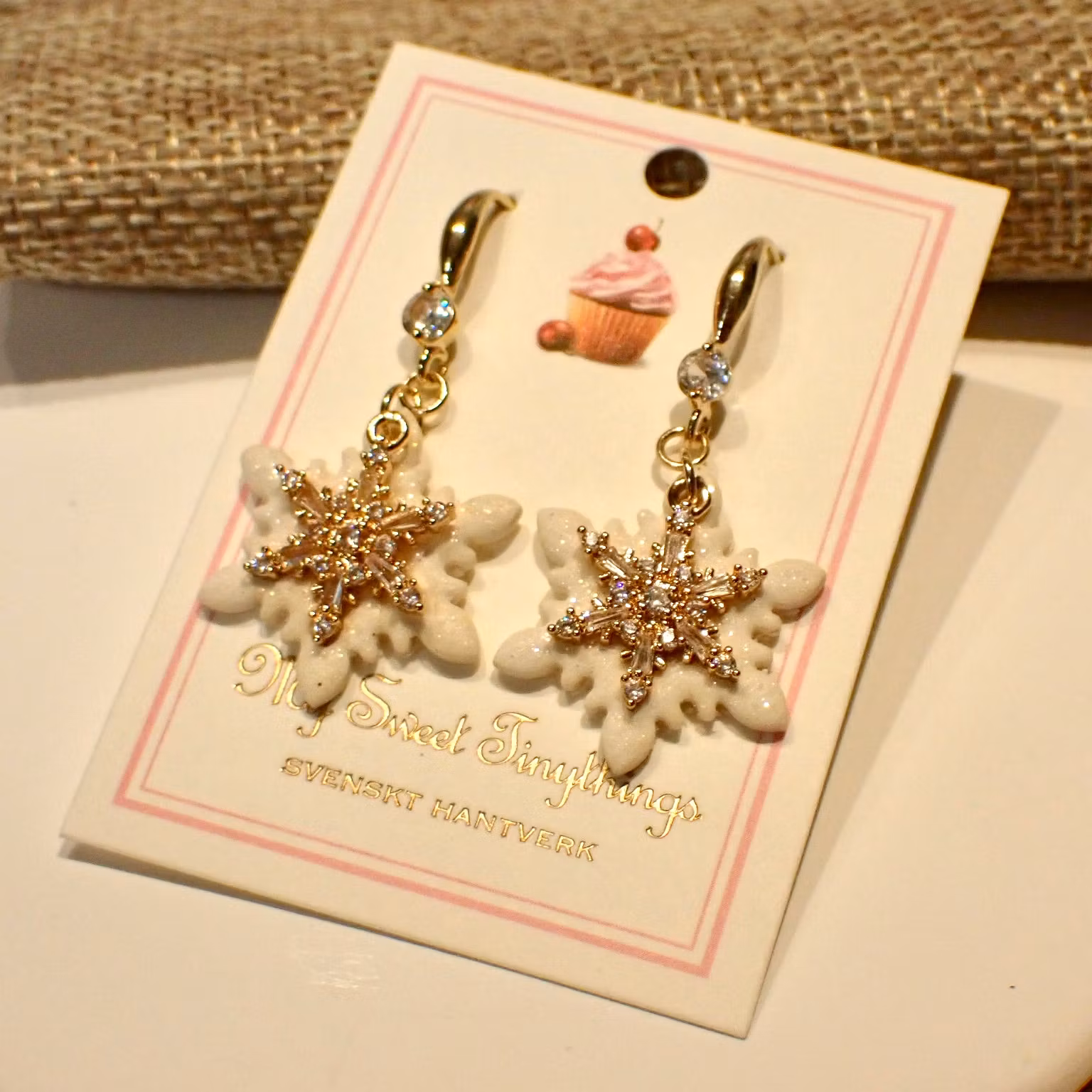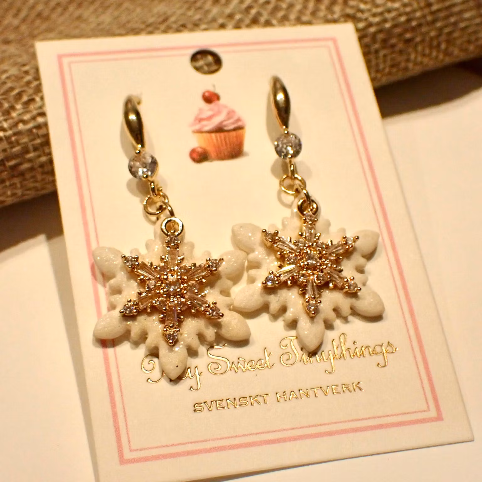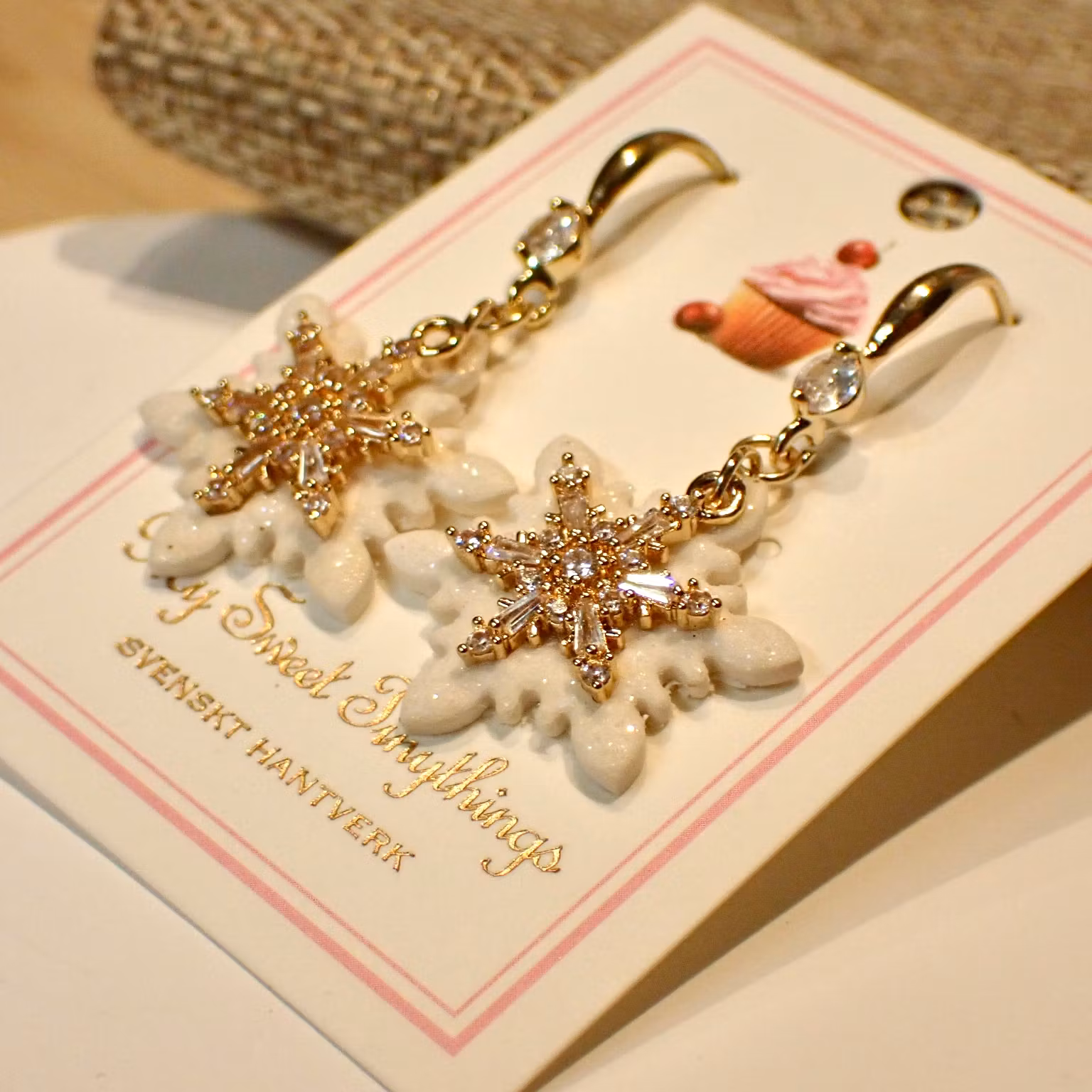 Gnistrande vackra snöflingor som kan bäras hela vintern! Guldpläterade krokar med lyxiga kristaller.