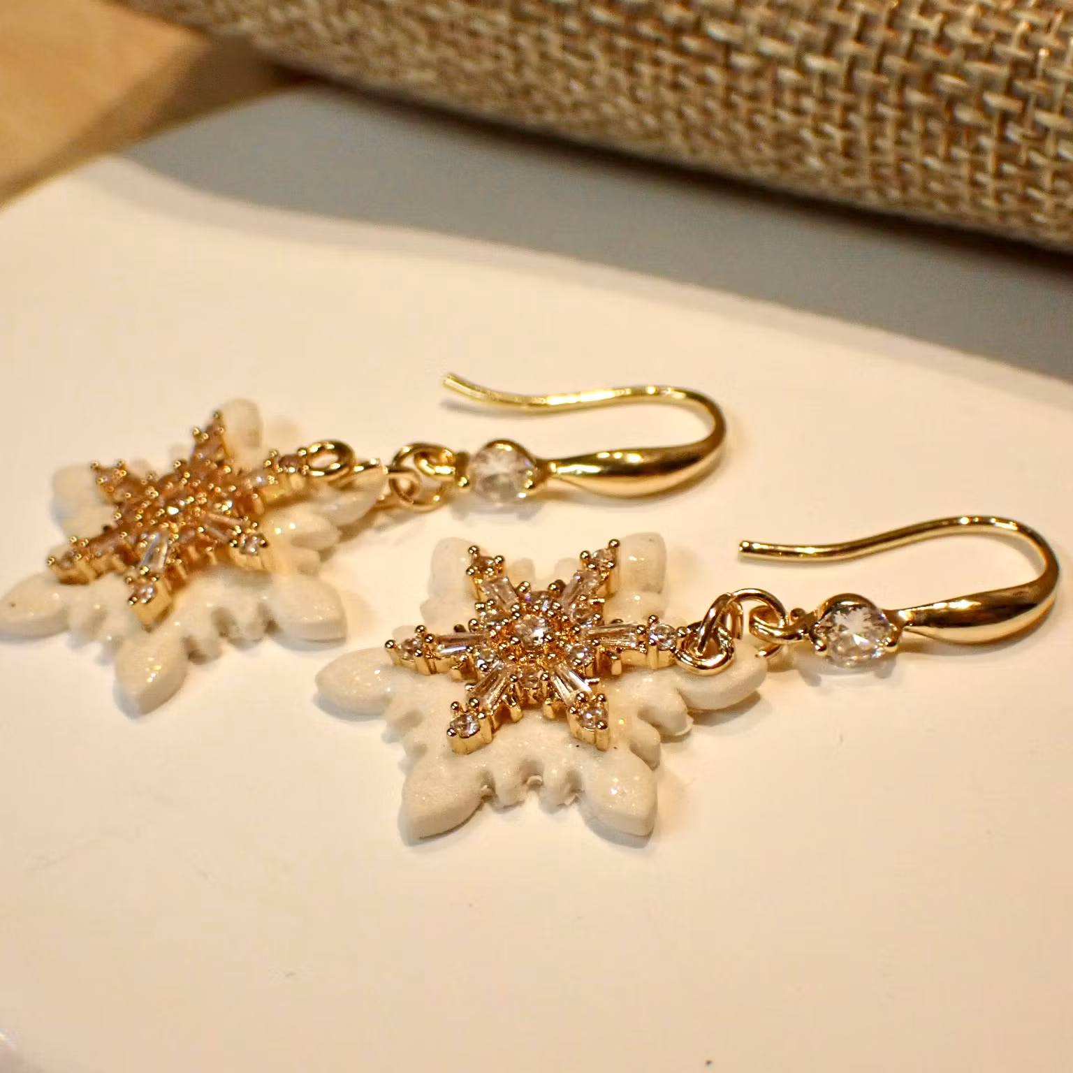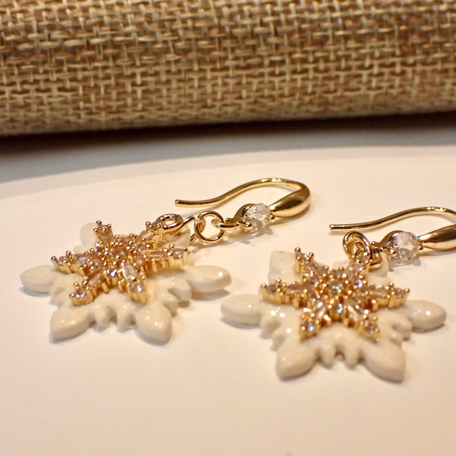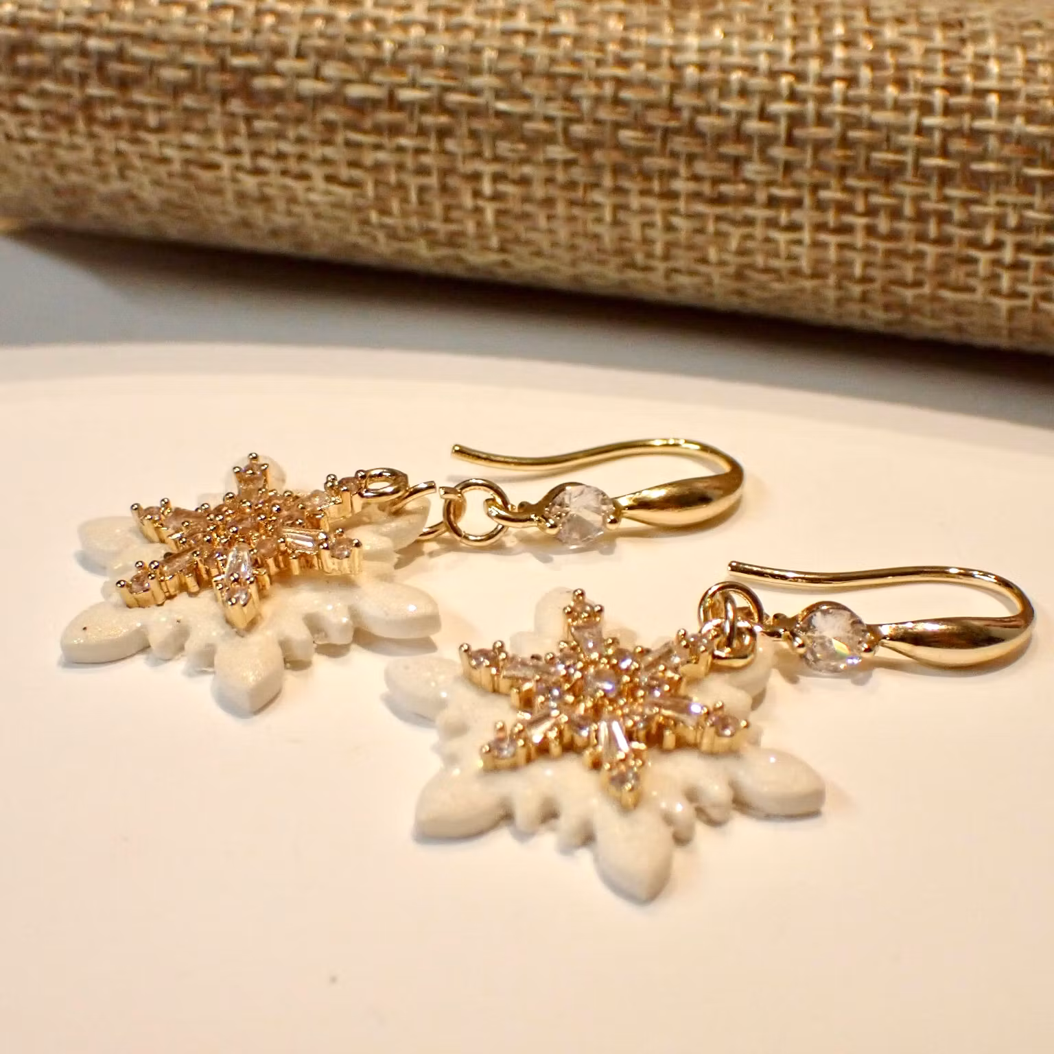 Gnistrande vackra snöflingor som kan bäras hela vintern! Guldpläterade krokar med lyxiga kristaller.