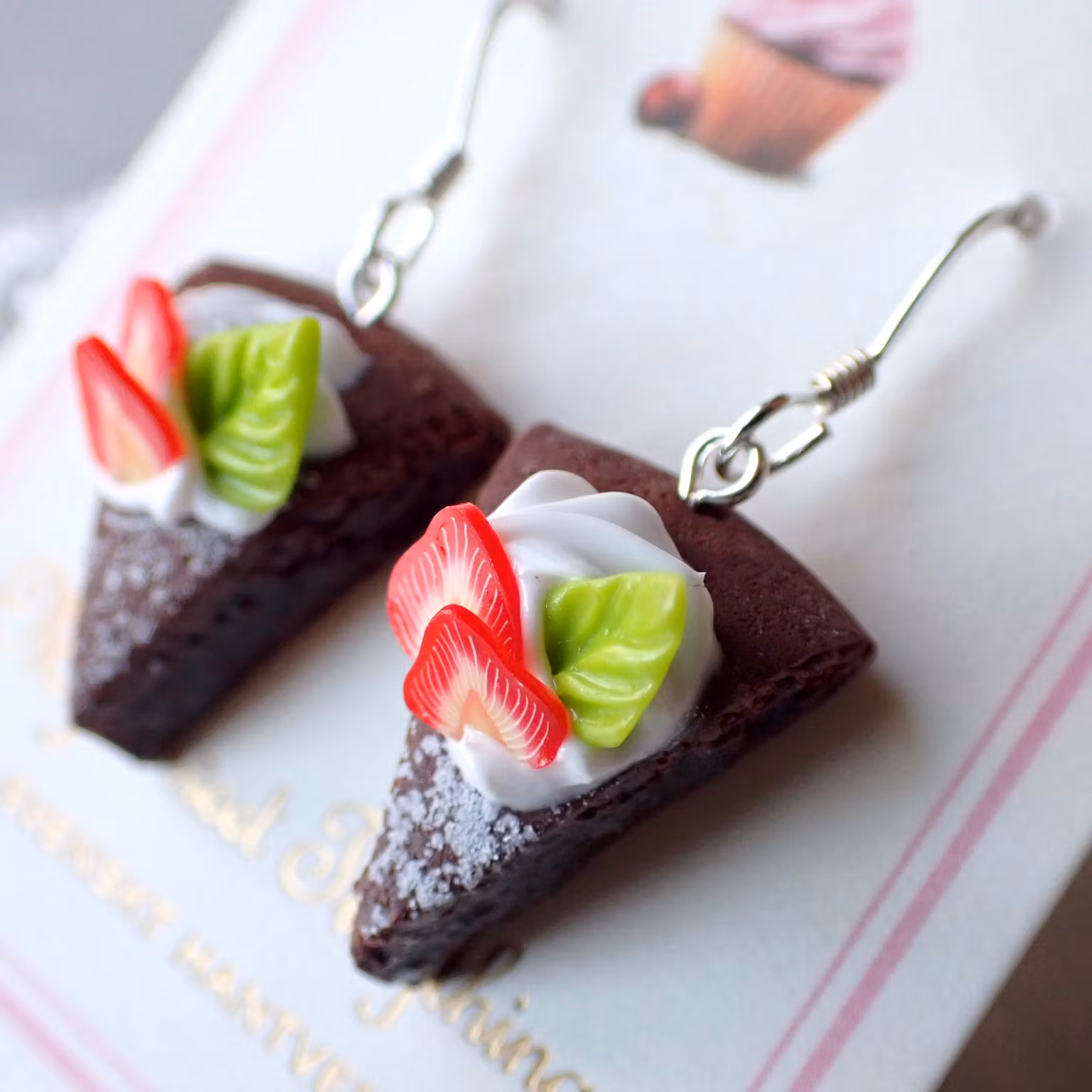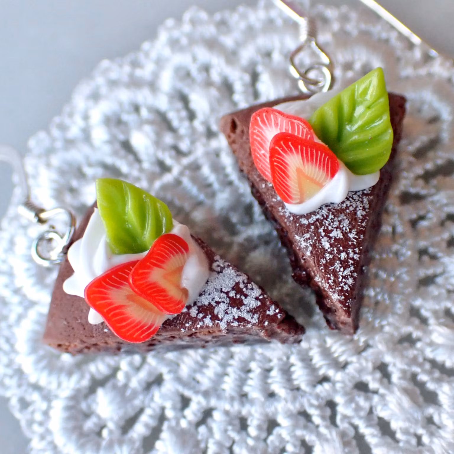 Jordgubbar, grädde och extra kladdig kladdkaka...vem kan motstå det? Krokar i äkta sterling silver 925, nickel- och allergisäkert.
