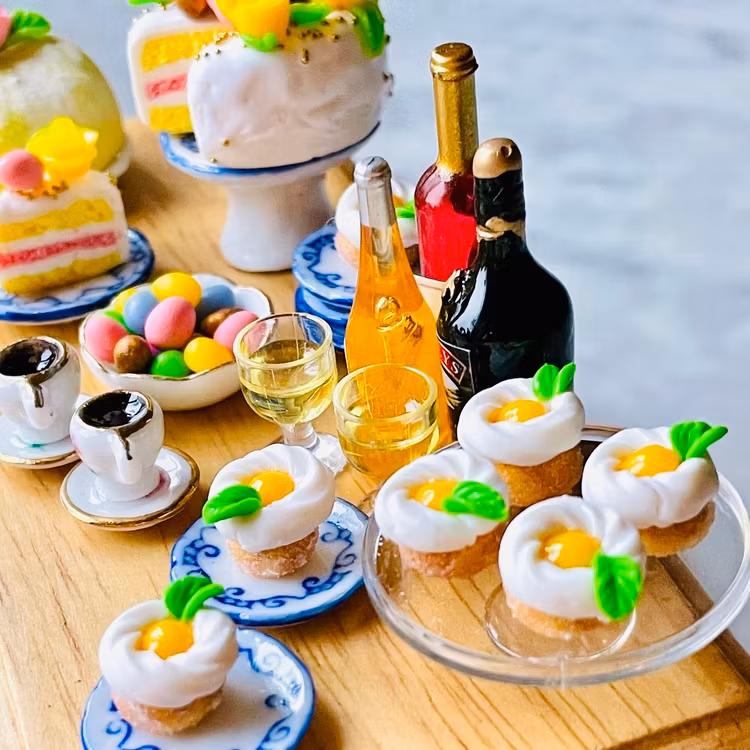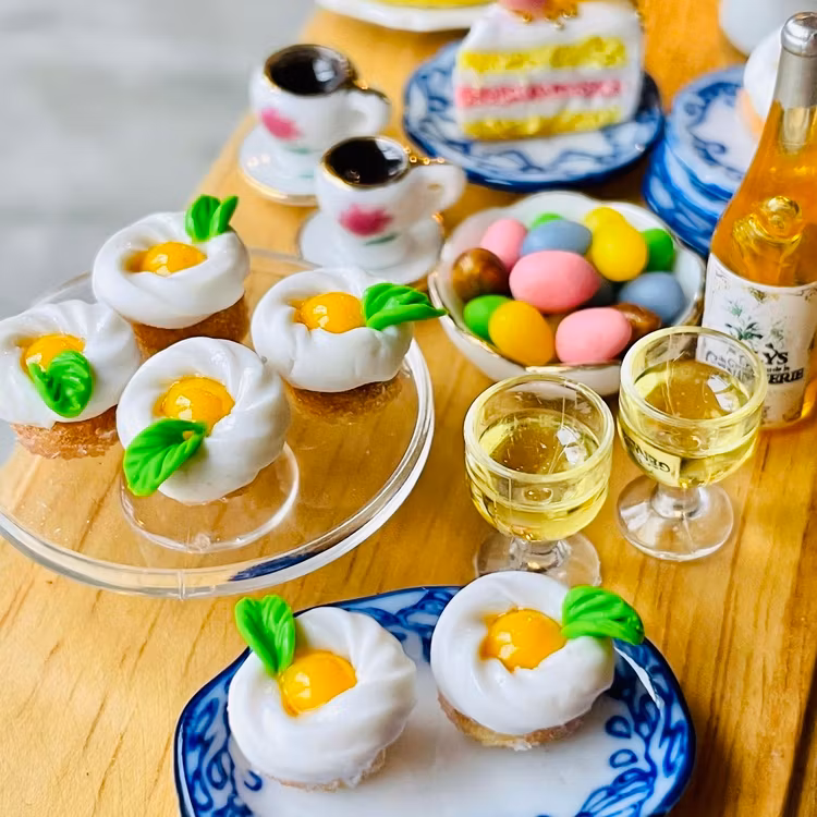 En riktigt klassisk påskbakelse med persika och spritsad grädde på en botten av sockrad rulltårta. Vackert på påskbordet!