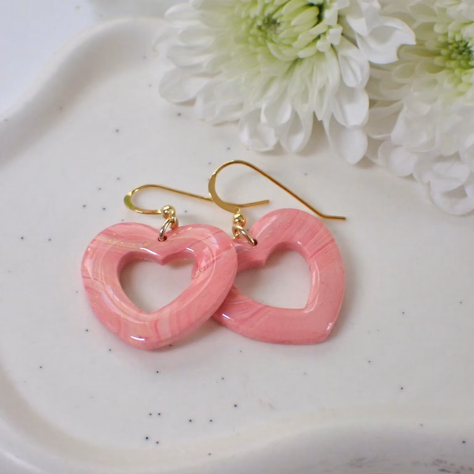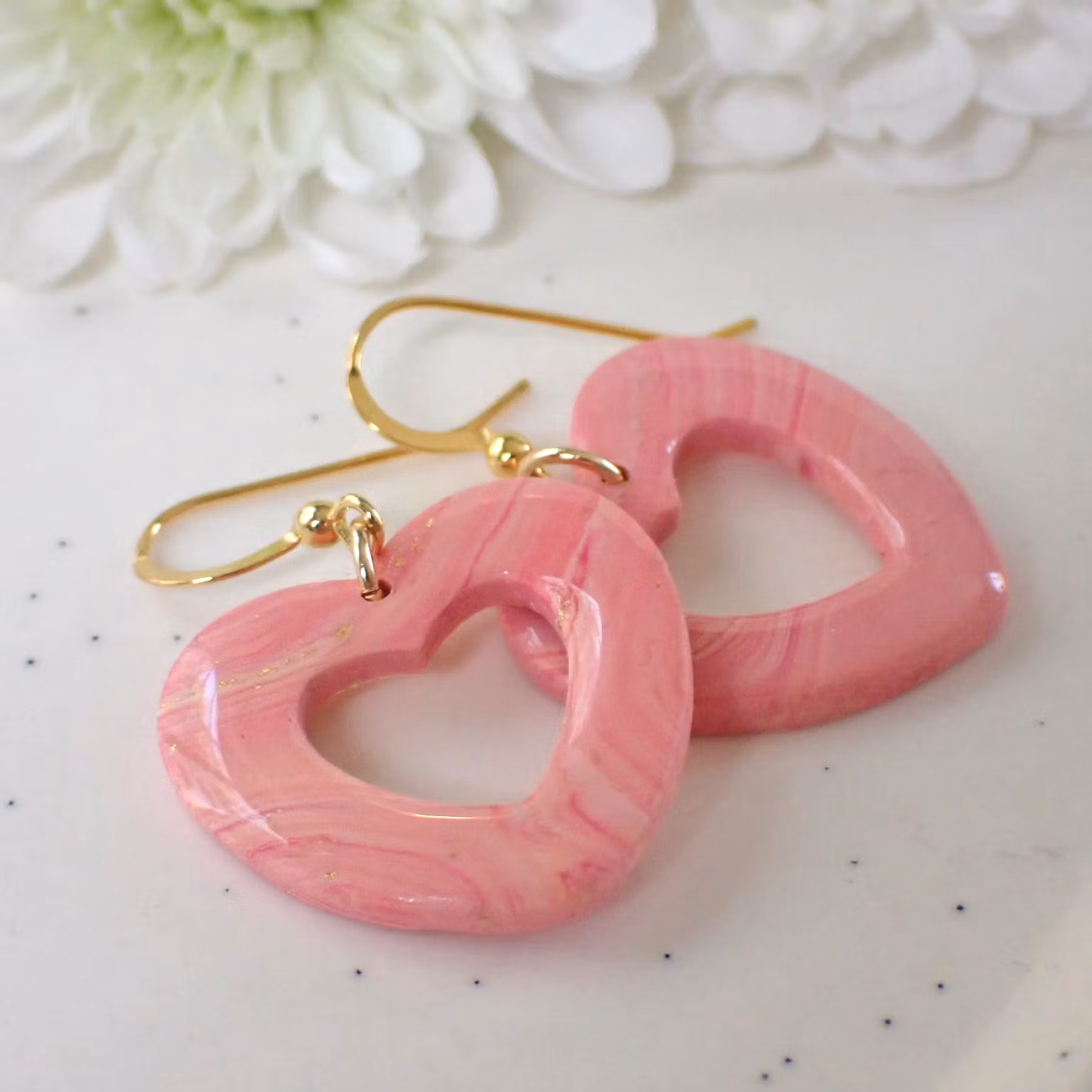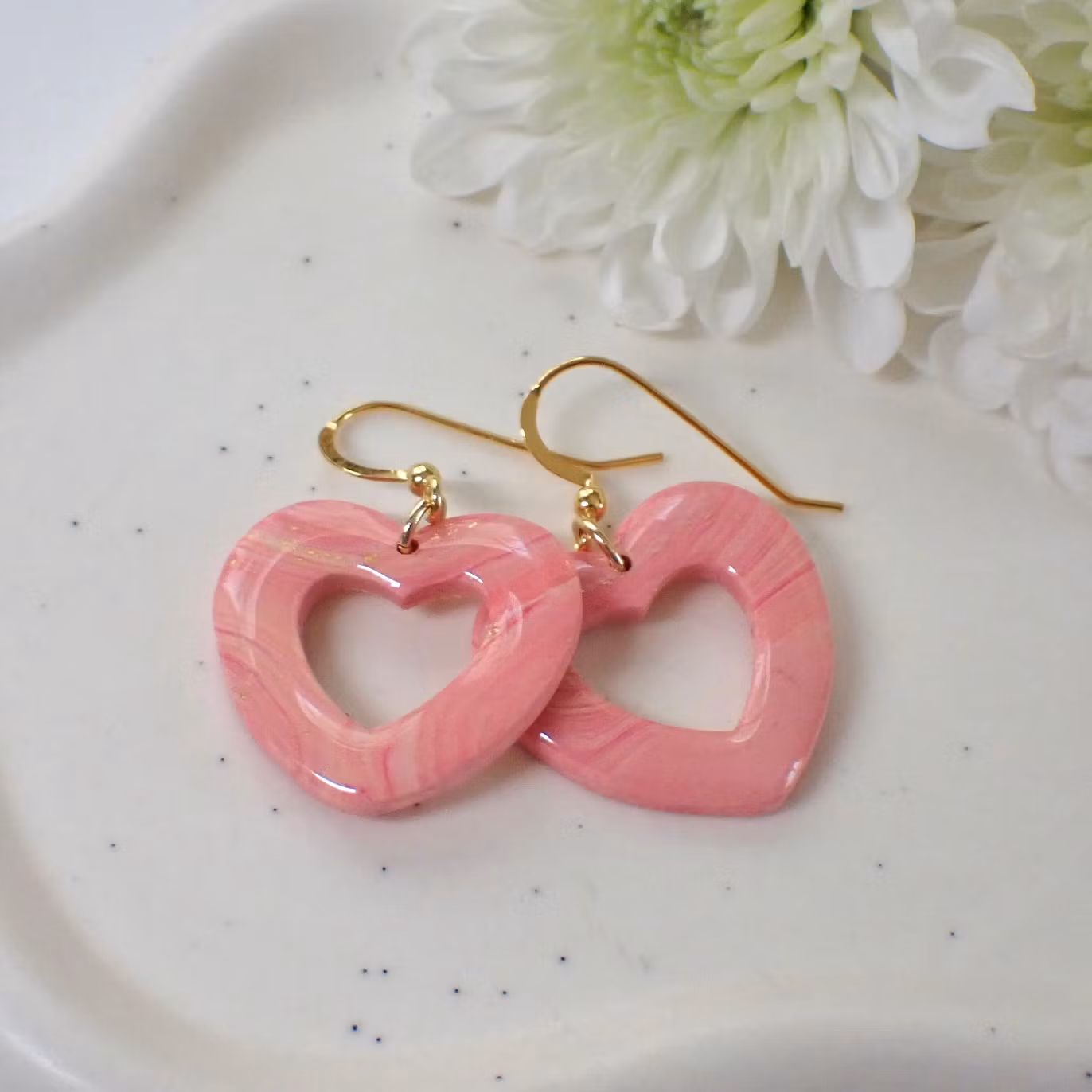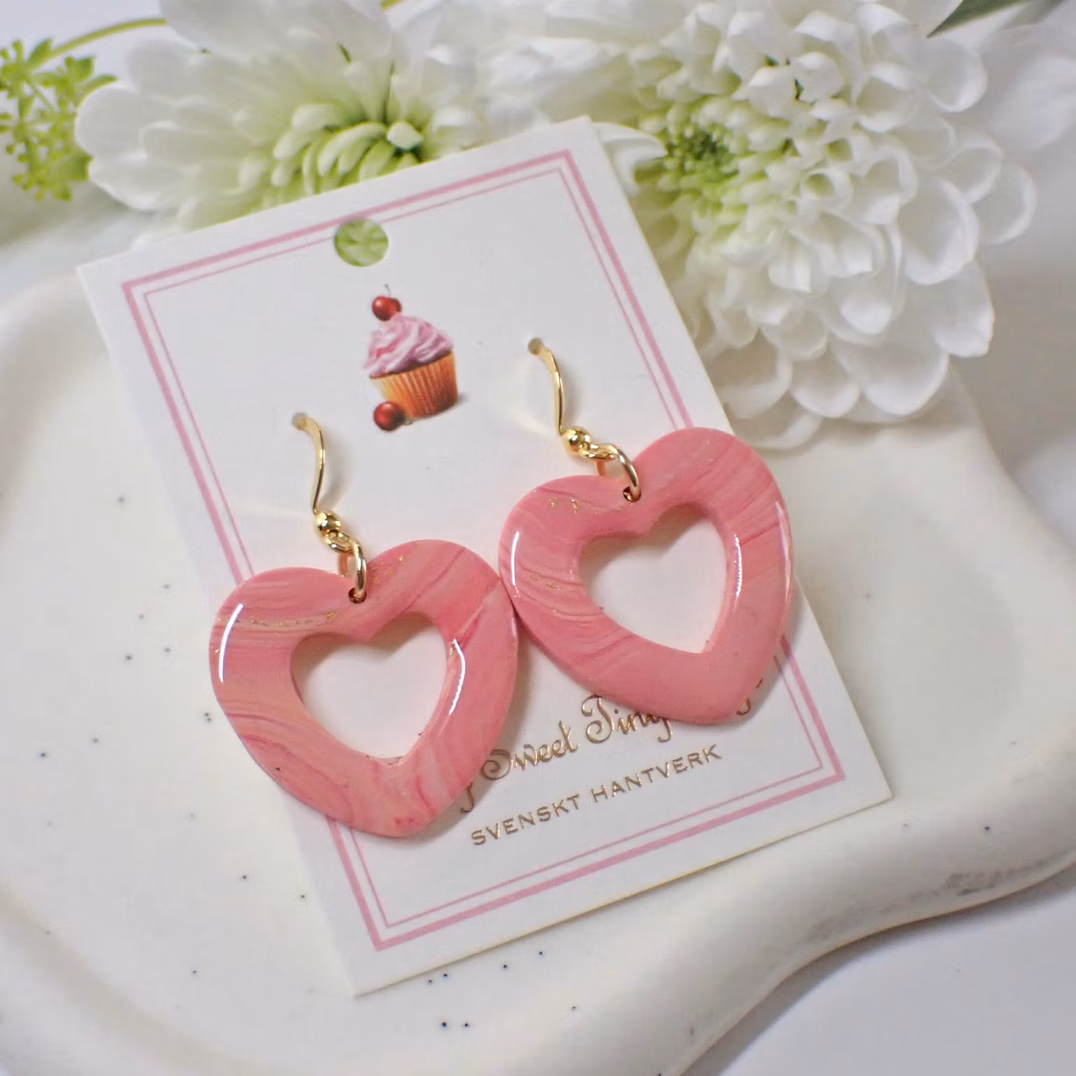 Handtillverkade och handmålade örhängen i polymerlera. Nickelsäkra krokar med guldplätering.