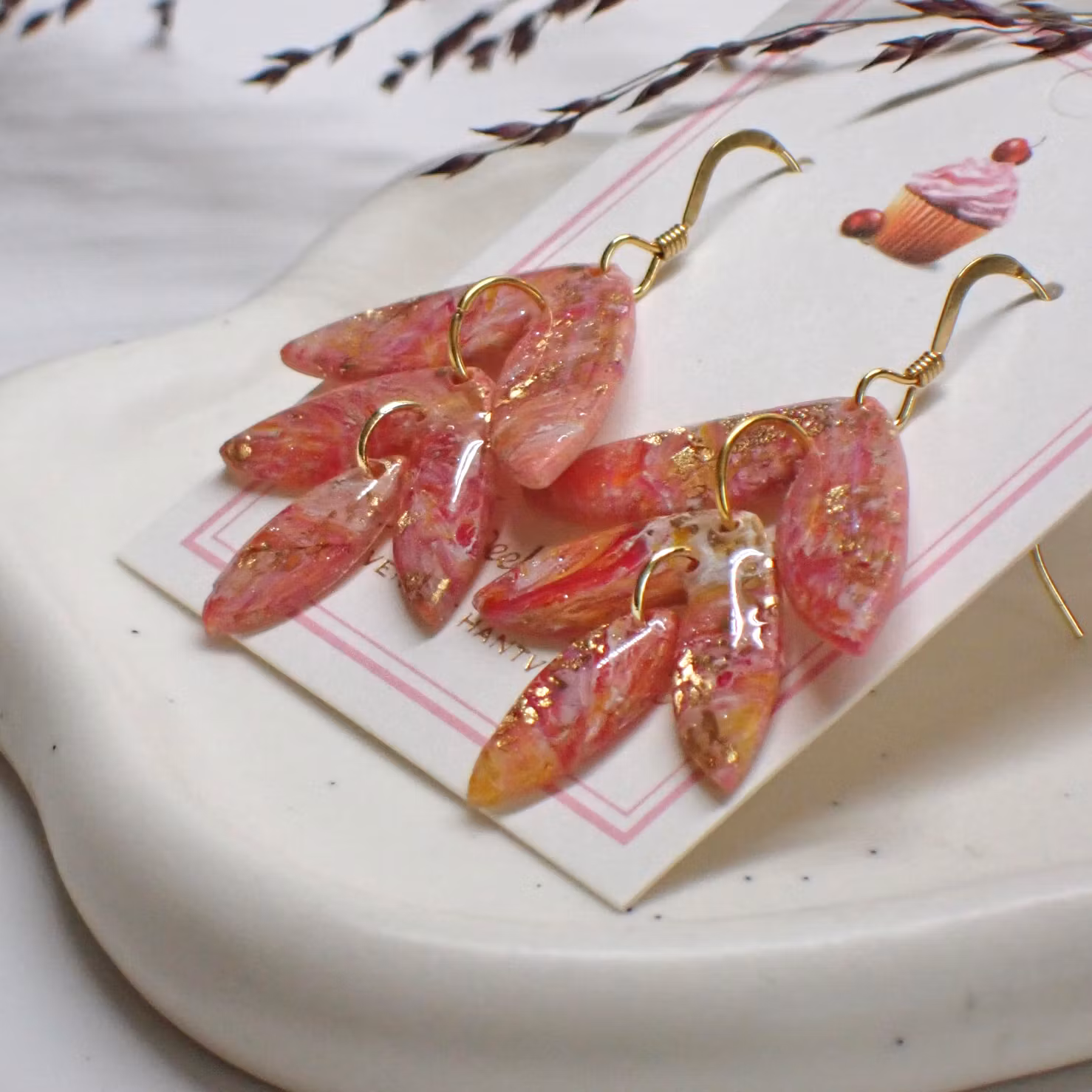 Handtillverkade och handmålade örhängen i polymerlera. Nickelsäkra krokar i äkta silver med möjlighet att välja till 18 karat guldplätering.