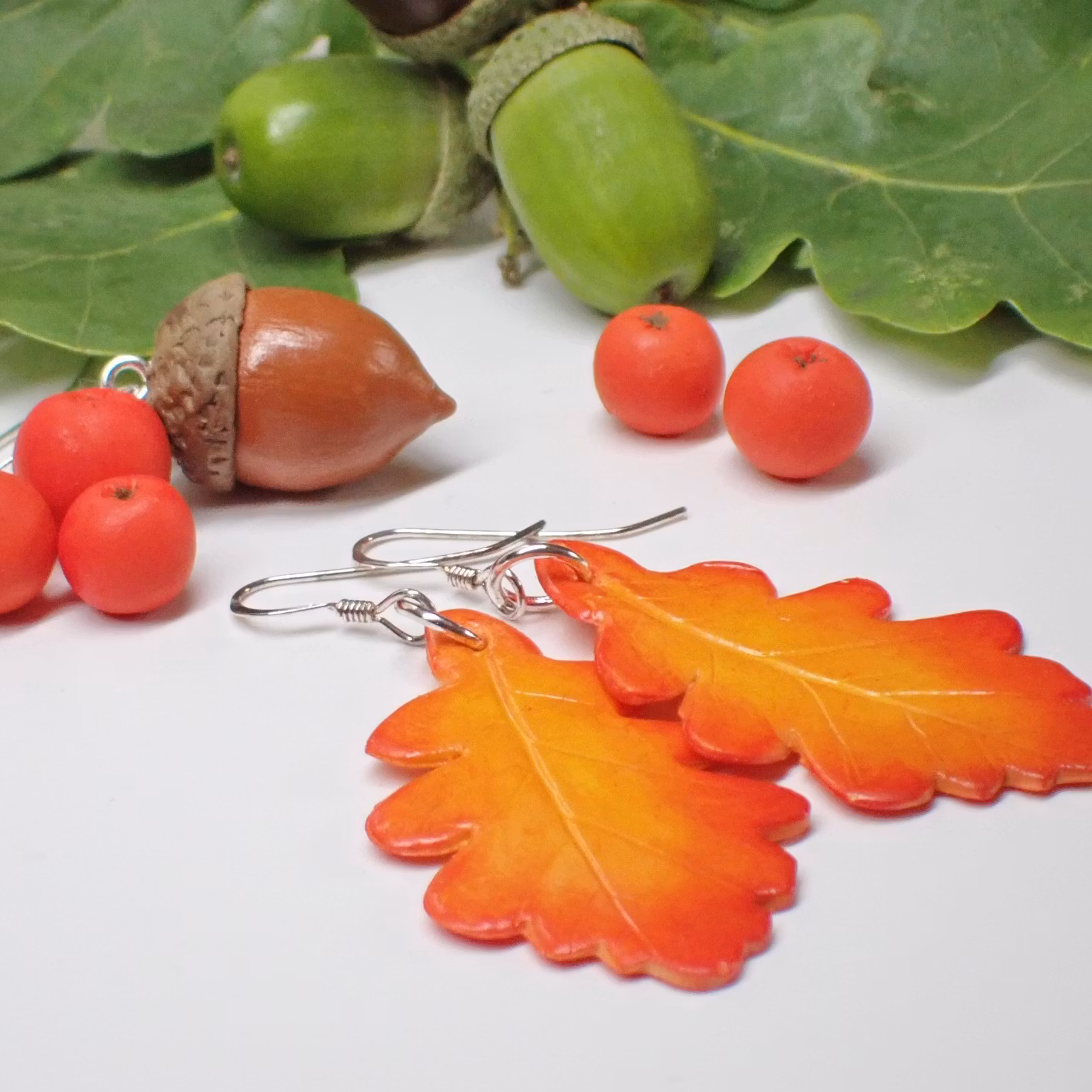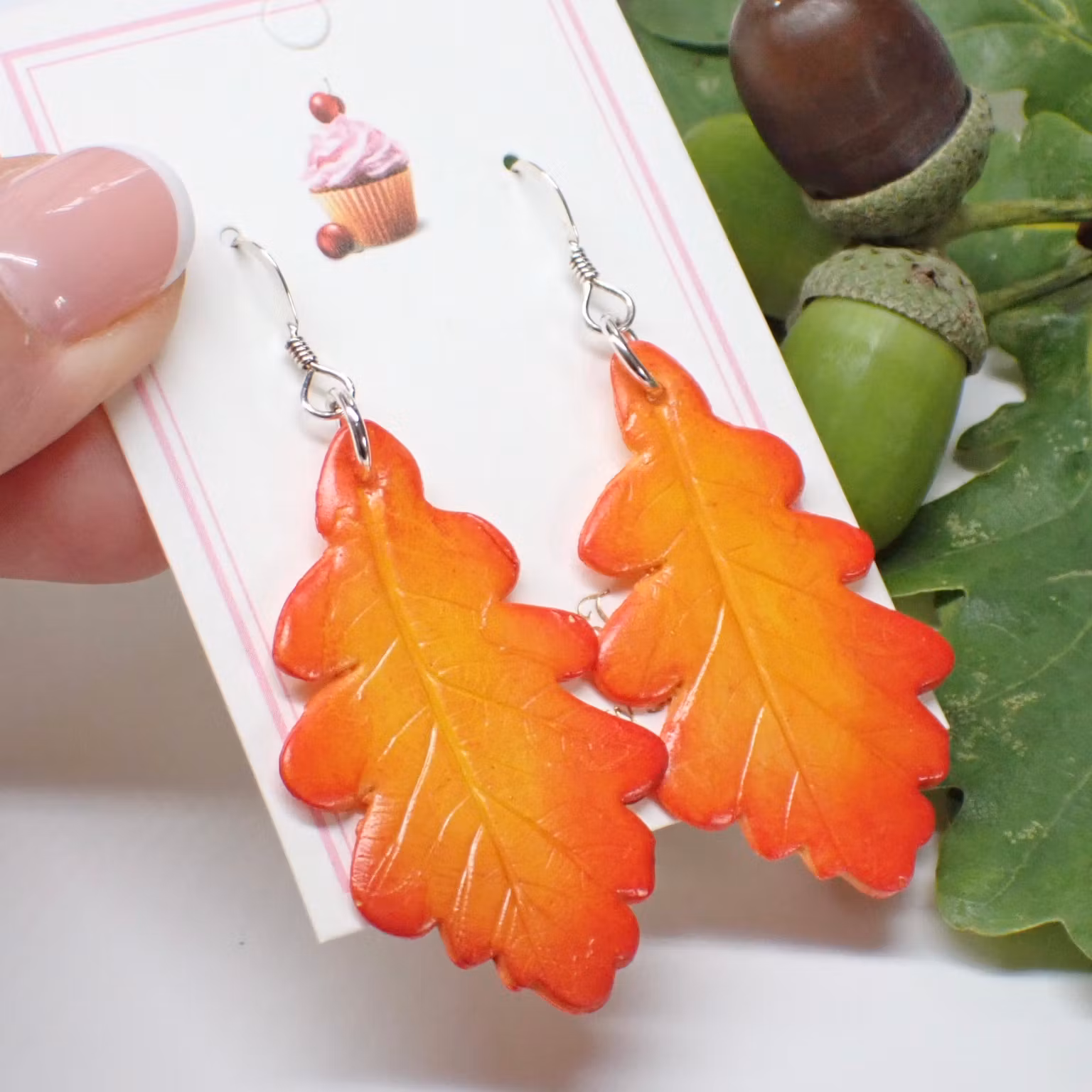 Vackra höstörhängen med stora eklöv som mäter cirka 42 mm på längden. Du kan välja mellan öronkrokar i sterlingsilver eller med 18 karat.