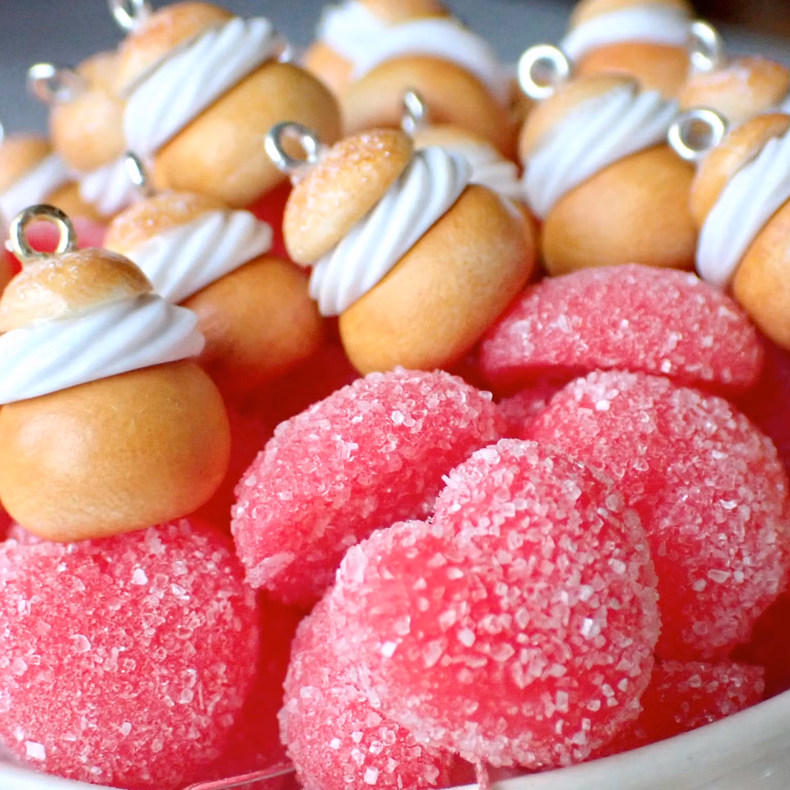 Söta små sockrade geléhjärtan att piffa upp dagen med! Örhängena är handgjorda och mycket naturtrogna. Öronkrokar (klassisk fransk) i äkta Sterlingsilver eller med guldplätering i 18 karat guld.