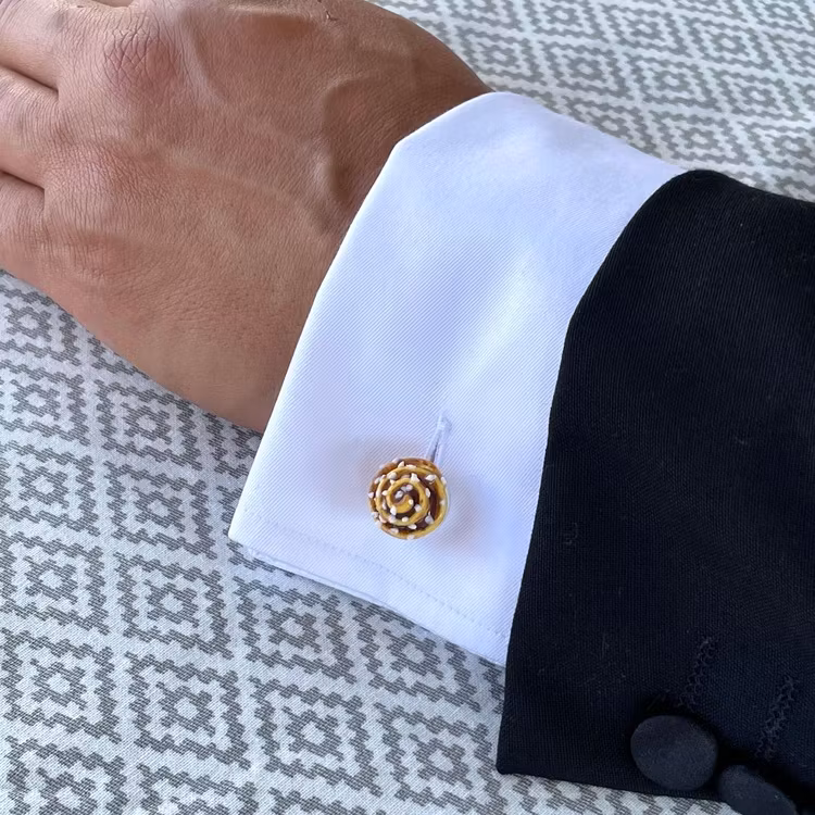 Toksnygga handgjorda manchettbullar med stiliga detaljer i silverpläterad metall. Perfekta presenten och garanterat ett unikt inslag i smyckesasken.